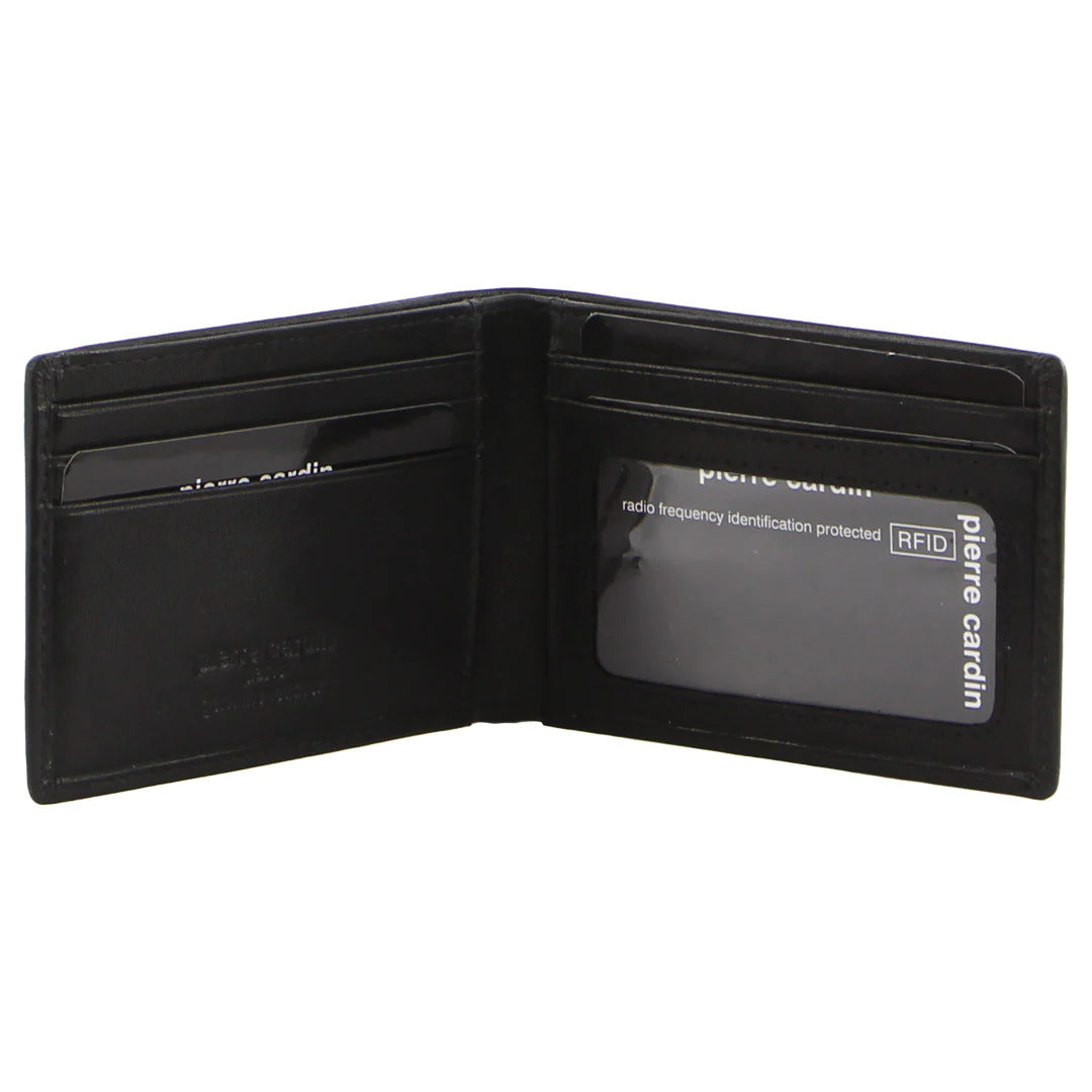 Pierre Cardin Mens Rustic Leather Wallet Bi-Fold RFID Slim - Black